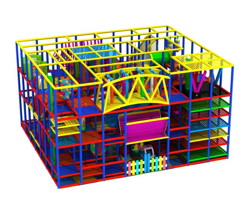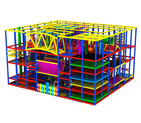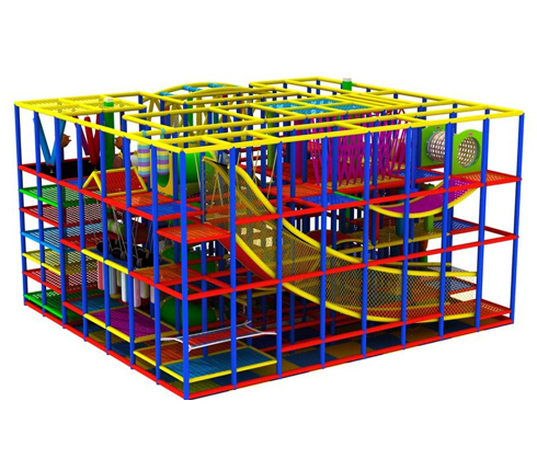 Every surface that a child can impact is either padded or designed to be impact absorbing. Our Tensioned Web Flooring System is so impact absorbing that you can drop an egg from over 20′ and it will bounce when it hits the webbing of our floors. Children are never made to crawl through hard plastic tubes so there is no need for kneepads in our playground. Kids can bounce, jump, climb, slide and play as they explore the playground maze. Our tensioned web playground is great for children from as young as 1 and older and even adults are able to join their children in the play structure.